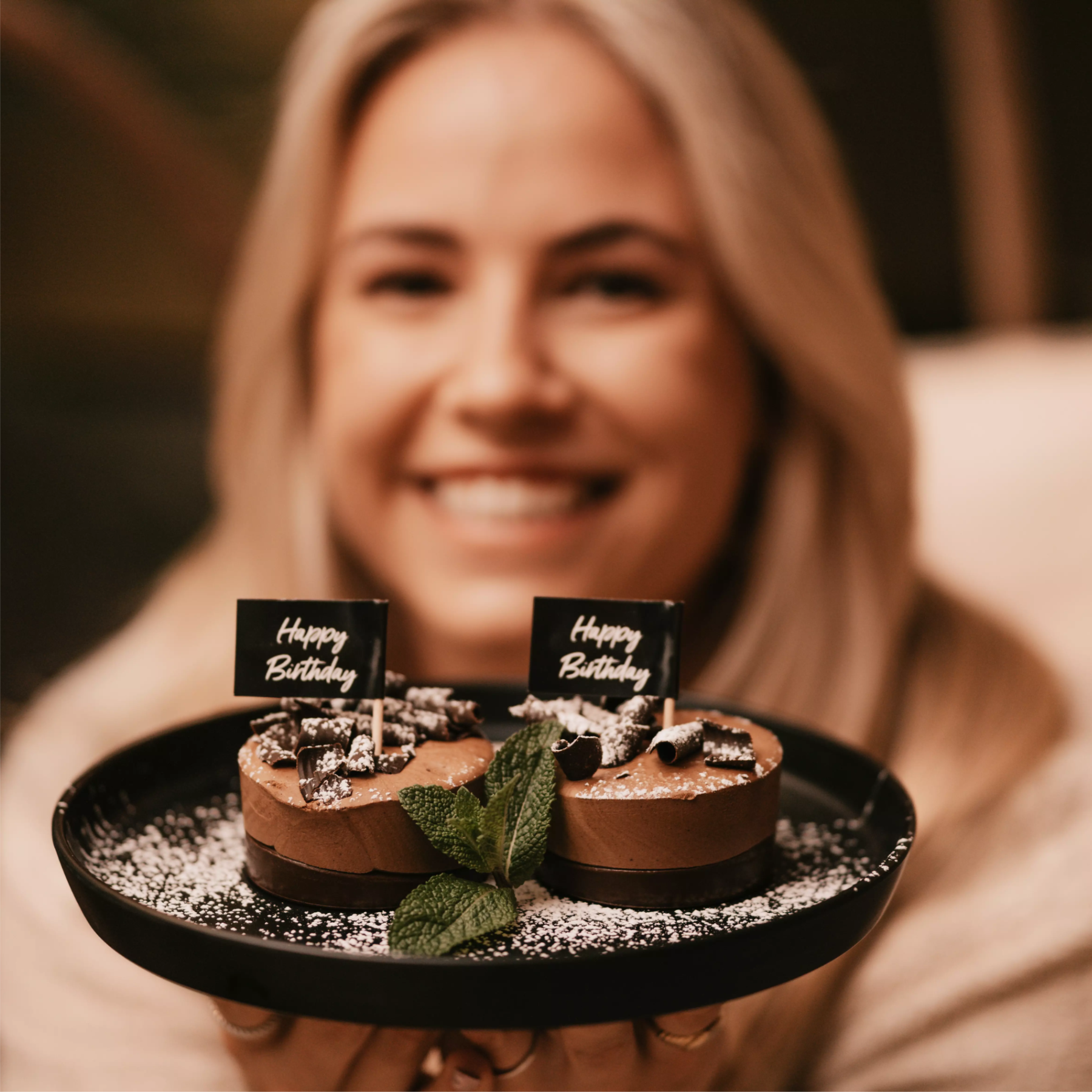 2 Cocktails nach Wahl, 2 Schokomousse-Törtchen, Geburtstagsgeschenk, Karte, Musik & 1 Goodie to go – das perfekte Geburtstags-Highlight. Einlösbar nur zusammen mit einem Aufenthalt – einfach während der Buchung hinzufügen.