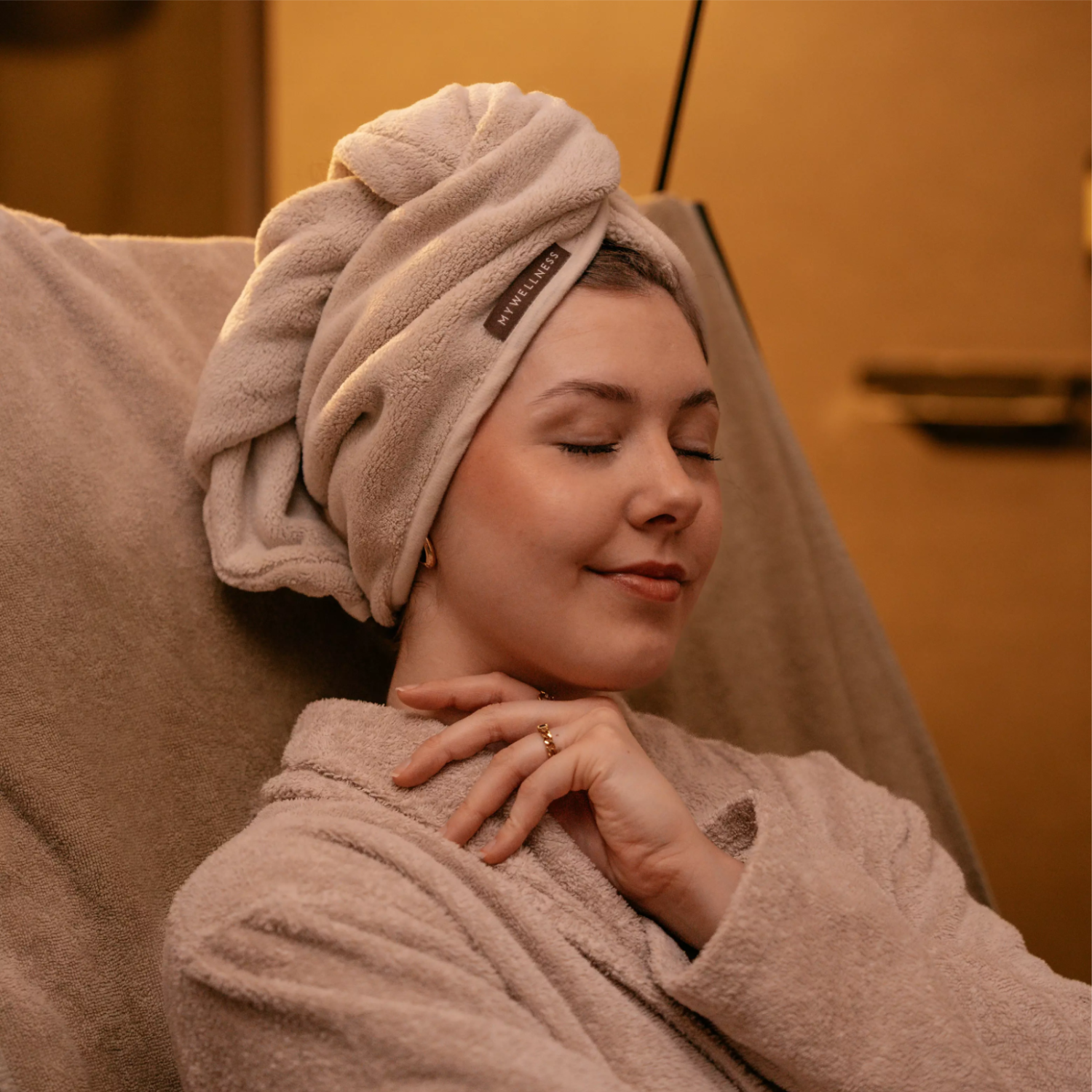 In seiner harmonischen Farbwelt fügt sich der Haarturban perfekt in das MyWellness Sortiment ein und ergänzt Bademantel sowie Saunatuch stilvoll. Ein durchdachtes Essential für Deine persönliche Wellness-Routine – Tag für Tag.