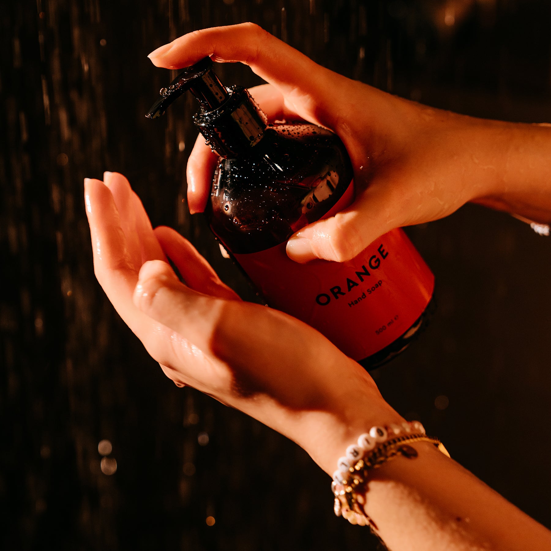 500 ml milde Reinigung. Die Hand Soap Orange mit Rosmarinöl und feinen Zitrusnoten reinigt sanft und hinterlässt ein angenehm frisches Hautgefühl – für gepflegte Hände, die nach Sommer duften.