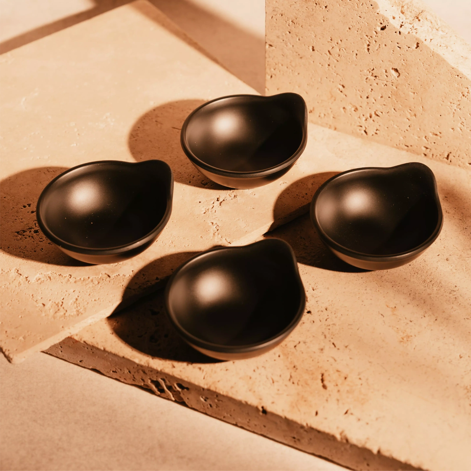 Modern und praktisch: Das Set aus 4 mattschwarzen Schälchen aus hochwertigem Melamin bietet stilvolle Präsentation und robuste Funktionalität. Spülmaschinengeeignet und ideal für Saucen, Snacks oder Beilagen.